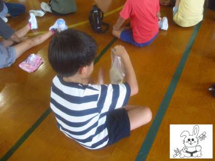 最後に、お米作りにまつわるお話を聞かせていただきました。実際のお米を見せていただき、子ども達も大満足でした。