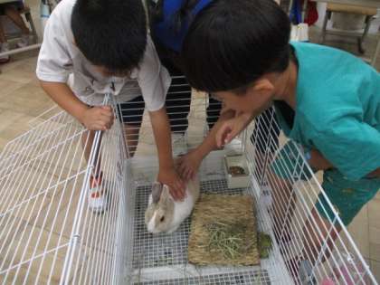 生活科の学習で、うさぎのぶーちゃんとなかよくなりました。耳の形、目の色、しっぽがついているところなど、よく見て、観察カードに書いていきました。触ってみると、毛がふわふわしているね!あたたかいね!かわいい〜!と口々に言っていました。ぶーちゃんもお疲れ様です!