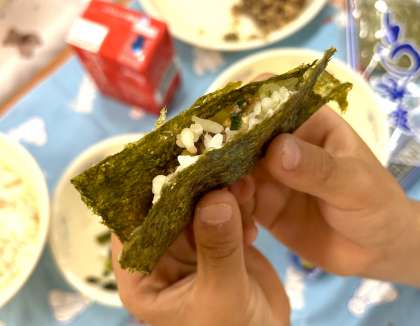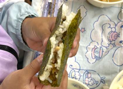 はじめて食べた1年生も、巻き方がとても上手でした。