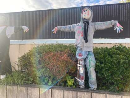 2年生の子ども達が、地域の方に作り方を教えていただき作成した「かかし」です♪