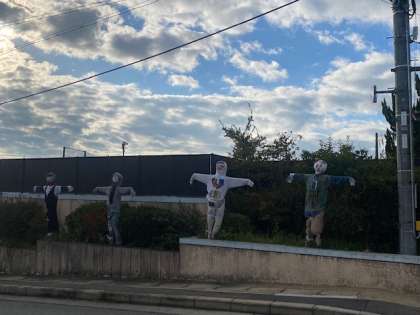 正門の前に立派な「かかし」が!!