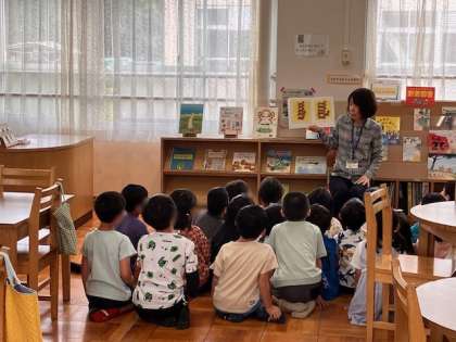 学校図書館で学校司書の先生の読み聞かせを楽しみました。