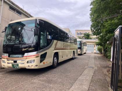 早朝はポツポツと降っていましたが、出発前になると雨はやみ、少し太陽が出るくらいになりました。いよいよ今日は大阪・関西万博に行く日です。「こんな未来だったらいいな」を、大原野小学校全員で確かめに行ってきます。