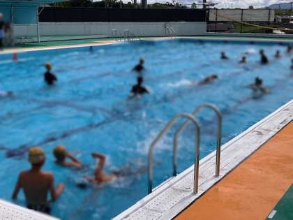 晴れていても暑すぎて水泳ができない、ということがありますが、今日は気温水温ともに水泳に適したコンディションで、子ども達もがんばりました。