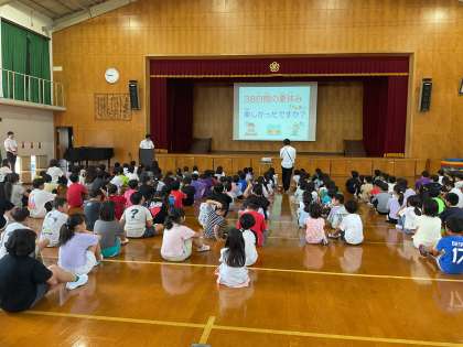 まだまだ残暑厳しい中でしたが、子ども達は校長先生のお話を最後まで静かに聞いていました。「背筋ピン!!」の姿がいいね☆