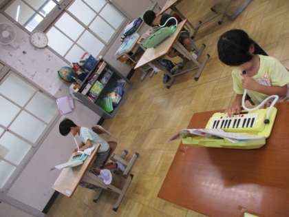 たけのこ学級の子どもたちは、音楽が大好きです。音楽に合わせて体を動かしたり、歌を歌ったりして楽しんでいます。鍵盤ハーモニカも意欲的に練習しています。今は、「ひのまる」を演奏しています。始めに音階で歌い、暗譜できるくらいになってから演奏すると、すらすら弾くことができます。すごいぞ!!