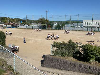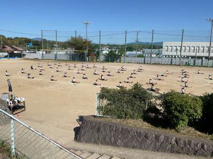 通し練習をしました。初めは、5年生が中心で創作した「表現運動」です。