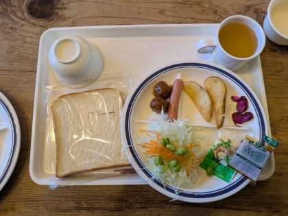 合同朝の集いの後は、朝食です。朝食で今日1日のバッテリー充電です。朝もバイキング形式です。過充電にならないように注意。