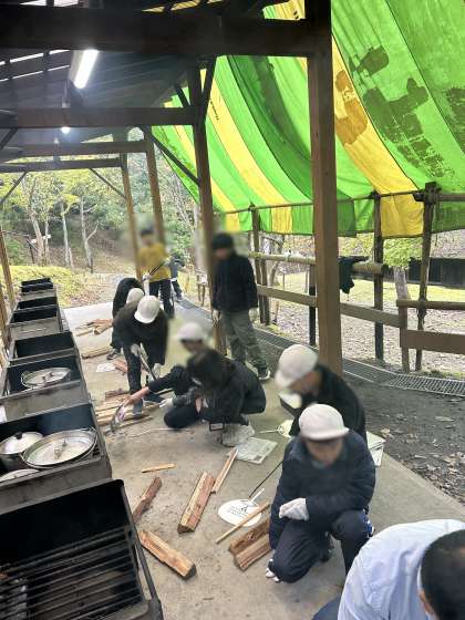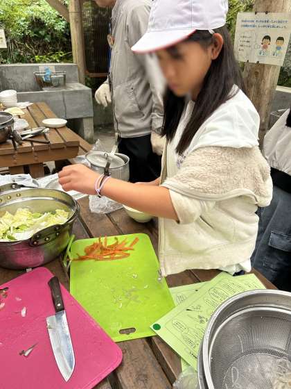 包丁の使い方や火の起こし方など、慣れないですが、がんばっています。