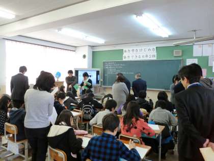25日(金),研究発表会を行いました。算数科の授業公開をしました。たけのこ学級,2年1組,3年1組,6年2組が授業を見てもらいました。多くの学校の先生に来ていただきました。