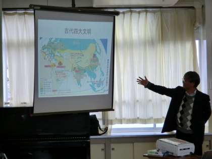 1月30日(水),京都新聞社の「ソフィアがやってきた!」の授業が行われました。講師の先生は地球研の長田俊樹名誉教授でした。「古代文明と環境」というテーマでお話ししていただきました。専門のインダス文明を通じて地球環境の変化がどのように人類に影響を及ぼすのかということを中心に、地球研の活動などを交えてお話ししていただきました。水にまつわる環境変化、農耕文化、歴史、言語などからの切り口でお話しを広げていただきました。長田俊樹名誉教授のプロフィールは次の通りです。総合地球環境学研究所名誉教授及び客員教授。神戸市生まれ。北海道大学文学部卒。インド・ラーンチー 大学博士課程修了。授業の様子の新聞掲載は3月3日になります。