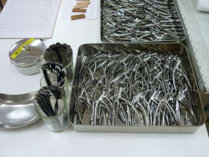 たくさん並ぶ検診器具を前に少し緊張した様子の子どもたちです。