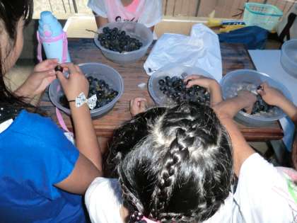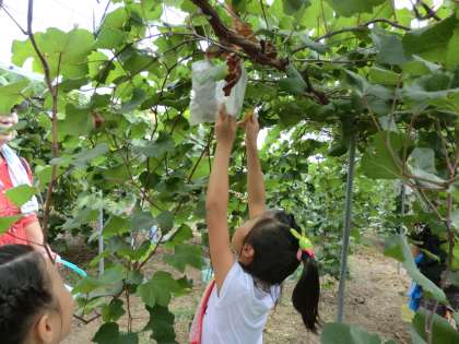 9月14日(土),大原野少年補導主催のぶどう狩りが行われ,大原野小学校児童,上里小学校児童が参加しました。千弥農園まで歩いていきました。ぶどうはその場で氷水で冷やしていただきました。とても甘くておいしかったです。