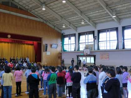 2月4日(火),5校時に6年生を送る会を行いました。PTAコーラスのみなさんの合唱から始まり,各学年からの歌や演奏,言葉などの発表をしました。全校合唱もありました。6年生から各クラスへプレゼントももらいました。大切に使います。