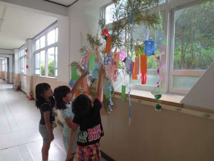 それから,ささにも かざりました。ねがいごとも,かざりました。