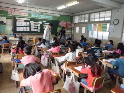 今日の4時間め,吉谷先生の『食』についての授業がありました。2年生で受ける『食』の授業は全部で4回あります。今日は最終回で,牛乳のひみつについて勉強しました。牛乳からできている食品や牛乳に含まれる栄養などしっかり勉強した後,ランチルームで給食を食べました。
