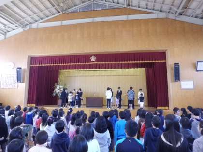 2つの離任式と着任式で,あいさつをしてくれました。
