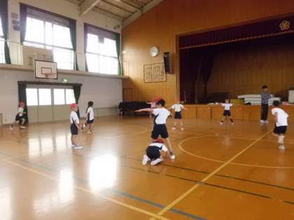 先日の体育でのおにごっこで,木おにというのを紹介して初めてやってみたのですが,タッチされて木になった友達を助けるためには,手を横に上げて足を広げているところをくぐらなければなりません。