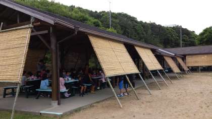 朝食風景と退所式の様子です。間もなく,鳥羽水族館へ向けて出発します。