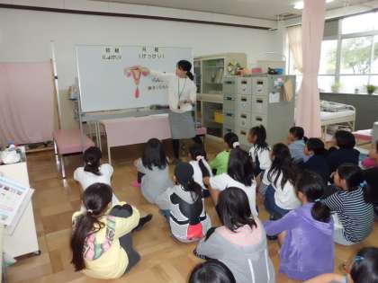 山の家の宿泊学習の前に,男子は男の教員から,女子は養護教諭から学びました。実際にナプキンや下着を触ったり,教員の経験談を聞いたりすることで,具体的にイメージすることができました。自分のこととして捉えられており積極的に質問をすることもできていました。体の変化に病気かと不安になったり,どう対処したらよいか分からず困ったり…そんなことがないようにご家庭と学校とでサポートしていきましょう。学習した内容をプリントで持ち帰らせています。ご確認ください。
