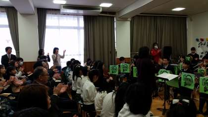 2月13日(土)に大原野中学で第21回三校音楽交流会がありました。大原野小学校の音楽部も合奏・合唱に取り組み,合計5曲披露しました。インフルエンザで練習が十分できなかったり,当日も全員が出演できなかったりとハプニングがありましたが,たくさんの方の前で発表し,良い経験となりました。また,上里小学校・大原野中学校・地域の音楽グループによる自分たちとは違った演奏を聞くことができました。特に中学校の発表ではアンコールがあり,みんなで手拍子をするなど楽しい一時となりました。
