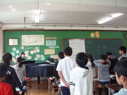 今年6年生は,音楽の時間,スクールサポーターの荒木先生と学習を進めていきます。