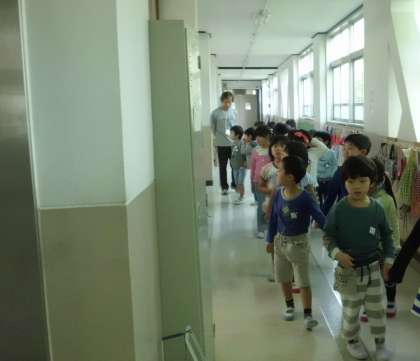 26日(火)に1年生だけで校舎の中を見て回りました。いろんな部屋があり,興味深そうにのぞき込んでいました。「やっぱり,理科室にはがいこつがあった。」「こんな部屋があるんや。」「おにいちゃん,おねえちゃんがいた。」などの感想が出ました。次は,2年生に案内してもらって学校探検をします。
