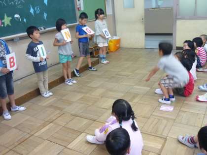 13日(金)の3時間目に生活科の学習で初めての「わくわく集会」をしました。今回は,「学校探検」に向けて,1年生と2年生が仲良くなれるように,自己紹介やリズムあそびをしました。手作りのメダルや自分たちが1年生の時に育てたアサガオから獲れた種もプレゼントしました。1年生の嬉しそうな顔を見て,とても喜んでいた子どもたちでした。帰りの会でも,「わくわく集会で大きな声でセリフが言えてよかった。」「1年生にありがとうと言ってもらえて嬉しかった。」とスピーチしていました。