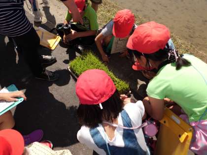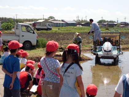 とても親切に稲の事や米作りの苦労などのお話も聞かせていただきました。機械を使ってとても素早く稲が植えられていく様子に子供たちはびっくり。とても集中して見ていましたよ。