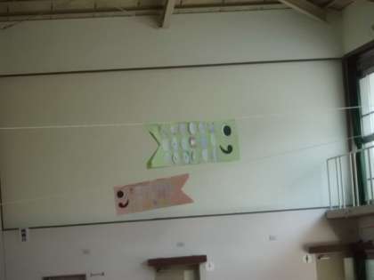 体育館には,みんながひとりひとり1枚のうろこをデザインして