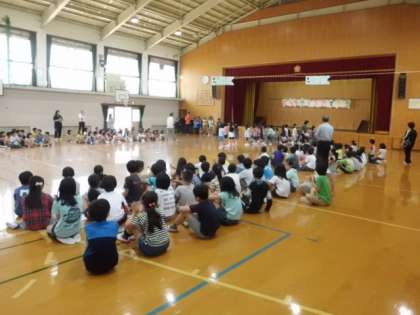 一緒に貨物列車のゲームをしたり,全校で「さんぽ」の歌を