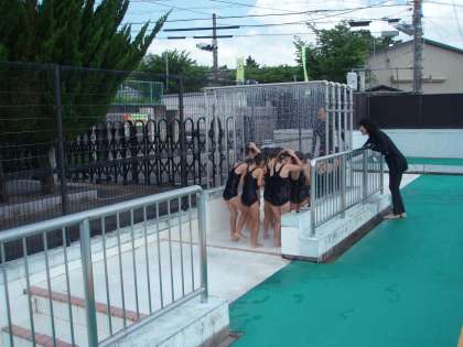 今年も水泳学習の季節がやってきました。今日は「プール開き」ということで,1年・2年が低水位で入りました。1年生は大きなプールに歓声を上げていました。しっかりシャワーを浴びて水泳学習の始まりです。保護者の方には先日よりお知らせしておりますが,安全に水泳学習ができますように,持ち物の準備,水泳学習健康チェックカードの記入等よろしくお願いします。