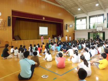 学校長の話の後,本部委員から今月の目標について,運動委員会からメンバーの紹介と活動について,保健委員会から6月の歯磨きについて頑張ったクラスの紹介がありました。