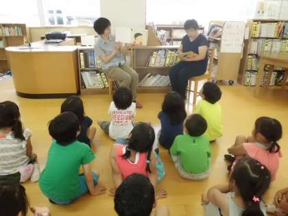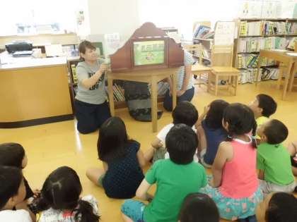 今月もおはなしでてこいをしていただきました。まず詩の朗読そして素話,絵本の読み聞かせ,紙芝居,ゲームと進んでいきました。どのお話もどうなるのかなとどきどきわくわくし,身を乗り出しながら聞いていました。とても楽しくて,どの子もいい笑顔でした。