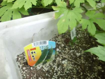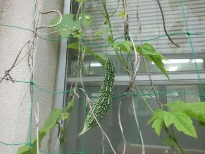 つるれいしが育ってきました。黄色い花が