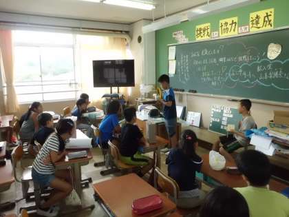 夏休み心に残ったことの発表と夏休みの作品の発表会をしました。緊張している人もいましたね。ひとりひとり心に残ったことを話してくれました。頑張って,作品もみんなに見せて発表してくれました。学習室に作品は展示しておきました。9月の参観懇談会の時に,ぜひご覧ください。