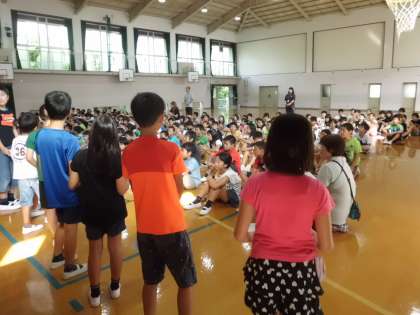 いろいろな作品展等に入選した児童の表彰がありました。今日は27名の児童が学校長から賞状をもらいました。