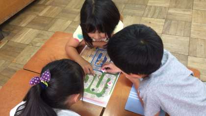 参観日の時のユンノリをする前に,すごろくをあまり知らない子もいたので,すごろくタイムも作ってみんなで楽しんでみました。