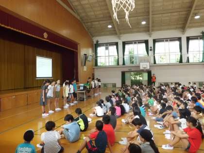 朝会がありました。本部役員の頑張り目標を伝えてくれました。保健委員会からの発表もありました。みんなで心がけて気持ちの良い毎日にしていきたいですね。