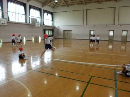 体育の「とびくらべ」で,ゴムとびをしました。みんな助走をつけて,ゴムをとびこえていました。とべないと,次こそはと一生懸命練習していました。