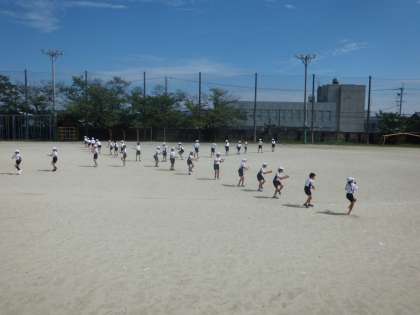 初めての運動場練習は,とってもうまく踊れていました。