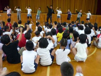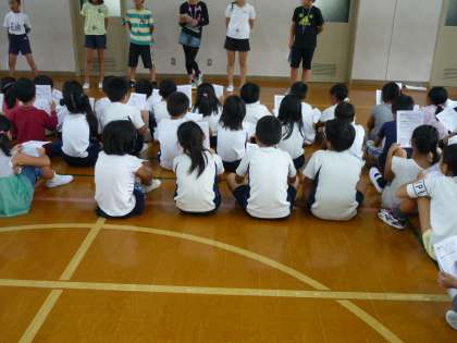 今日は,1時間目に運動会に向けての応援練習がありました。体育館で赤白に分かれて,応援歌の練習やコールの練習をしました。頼りがいのある応援団のパワーにつられて,2年生の子たちも大きな声で歌ったり,元気にコールしたりする姿が見られました。応援練習終了後,教室へ戻った子どもたちが,自分達で練習している姿がとても微笑ましかったです。