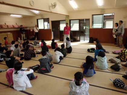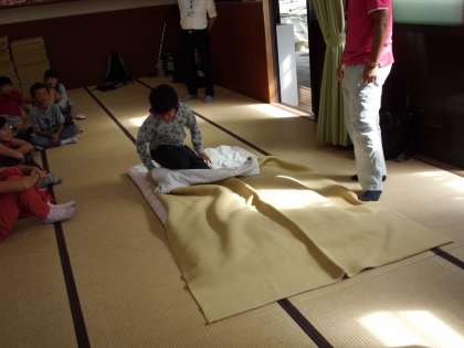 みさきの家の先生からトイレやお風呂の使い方、寝具準備の仕方を教えてもらいました。