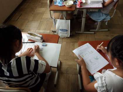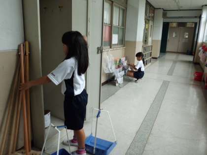 整理係は掃除道具や雑巾の整理を,学習係はみんなに学習プリントを作っています!
