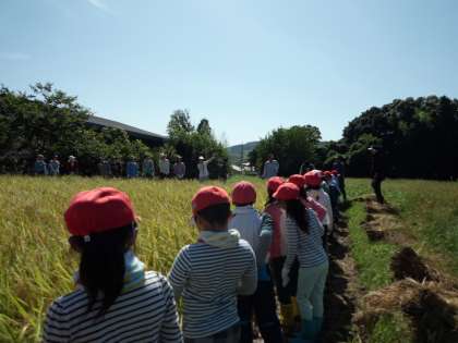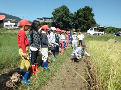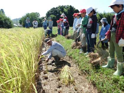PTAの方や地域の方にお世話になり,稲刈りをしました。