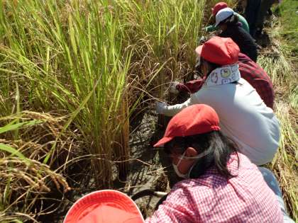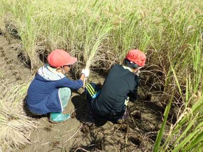 鎌を使っての作業なので心配していましたが,なかなかうまく稲刈りができていて感心しました。