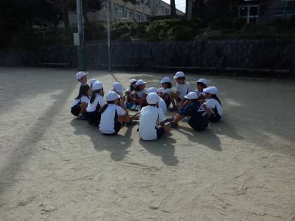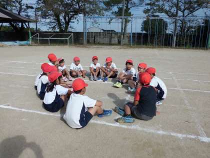 自分たちから自主的に「輪になろう!」と声を上げ,一人一人の意見を聞きながら,チームのみんなで作戦を考えていました。その姿が,とても微笑ましかったです。