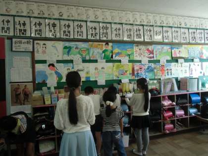 今日の6時間目にみんなが「お話の絵」で描いた作品の鑑賞会をしました。友達の絵をみて,上手い・きれいだけでなく,どんなところが上手いのか,また工夫しているのかを見つけようということでスタートしました。友達の良いところをみつけ,さらに自分の作品にもいかしてほしいと思います。