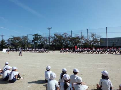 運動会当日は選択種目として「綱引き」「リレー」があります。また「つながり種目」として玉入れをします。