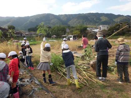 ケナフの刈り入れ